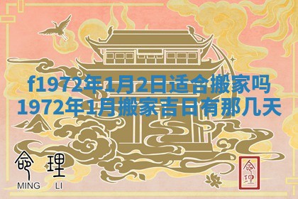 1972年1月2日适合搬家吗,1972年1月搬家吉日有那几天,1972年1月搬家吉日一览表