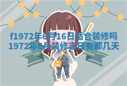 1972年6月16日适合装修吗,1972年6月装修吉日有那几天,1972年6月装修吉日一览表