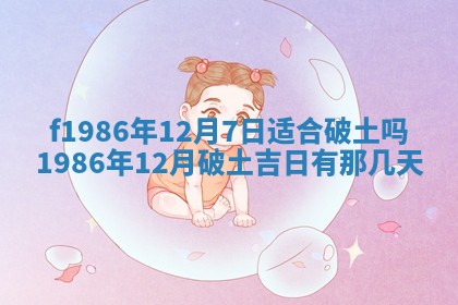 1986年12月破土吉日共有3天