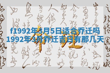 1992年3月5日适合乔迁吗,1992年3月乔迁吉日有那几天,1992年3月乔迁吉日一览表
