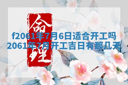 2061年7月6日适合开工吗,2061年7月开工吉日有那几天,2061年7月开工吉日一览表