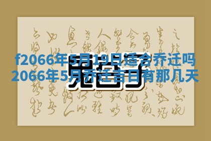 2066年5月19日适合乔迁吗,2066年5月乔迁吉日有那几天,2066年5月乔迁吉日一览表