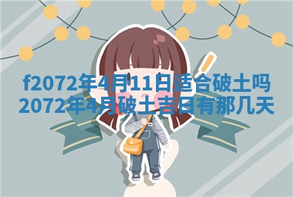 2072年4月11日适合破土吗,2072年4月破土吉日有那几天,2072年4月破土吉日一览表