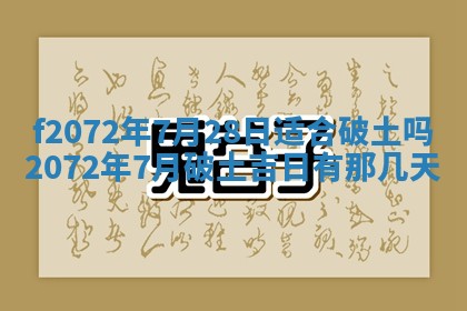 2072年7月28日适合破土吗,2072年7月破土吉日有那几天,2072年7月破土吉日一览表