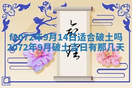 2072年9月破土吉日共有6天
